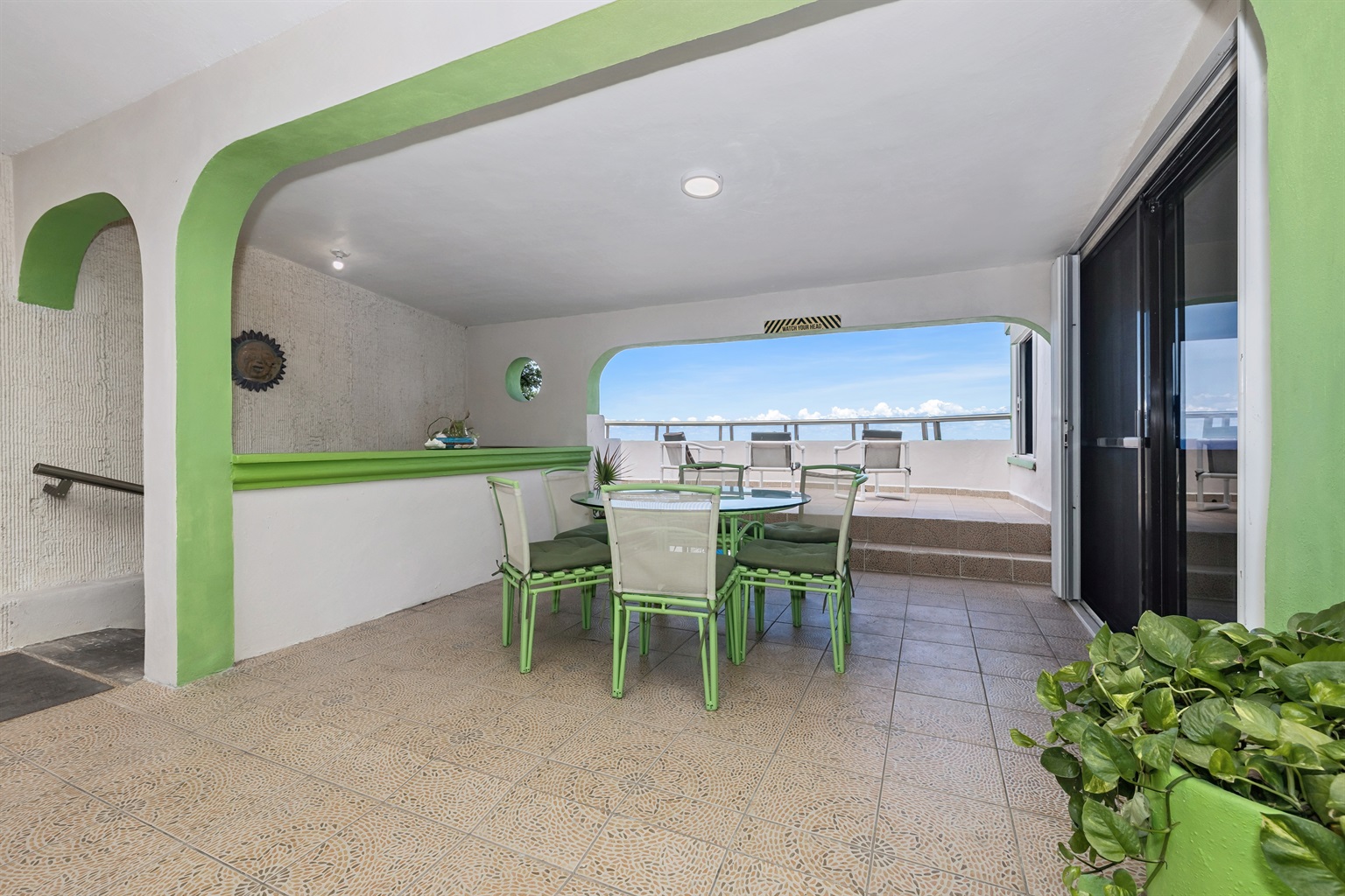 Outside, an inviting dining area awaits, offering a picturesque setting for enjoying breakfast before embarking on a day of sunbathing and swimming in the pool or ocean.