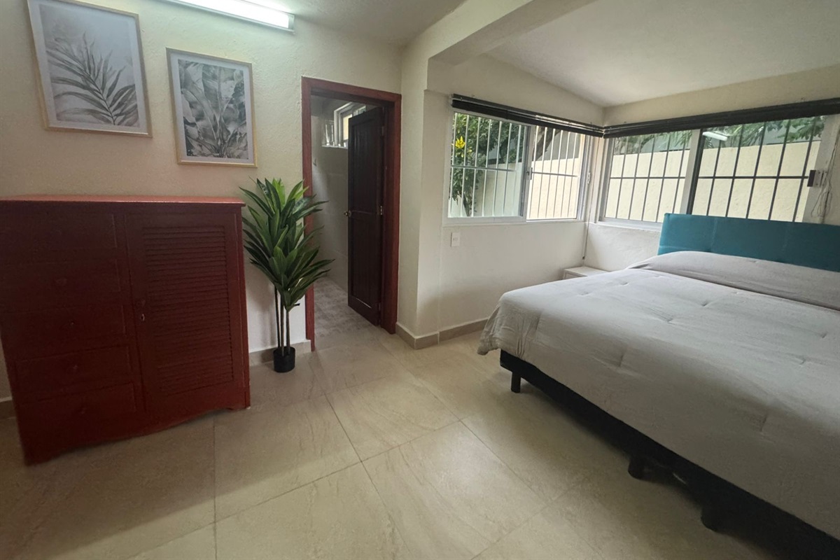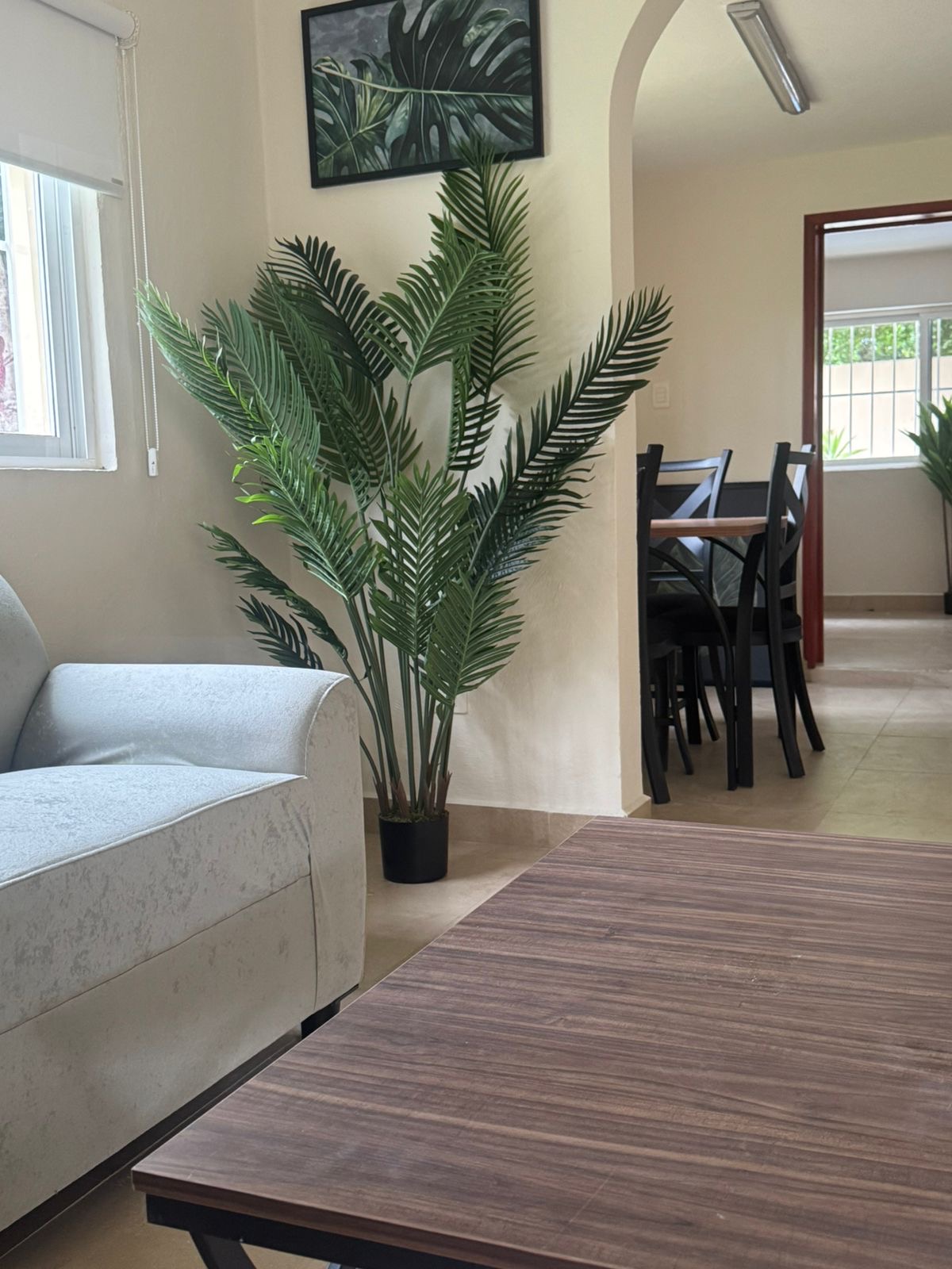 Surrounded by lush greenery and enclosed by a 10-foot privacy wall, this peaceful home feels like your own hidden oasis. Inside, you’ll find a fully equipped kitchen, dining area, and bright, open living space with full AC and stylish jungle-inspired decor. Step outside to enjoy your private yard and refreshing pool, ideal for lazy mornings or evening swims under the stars.